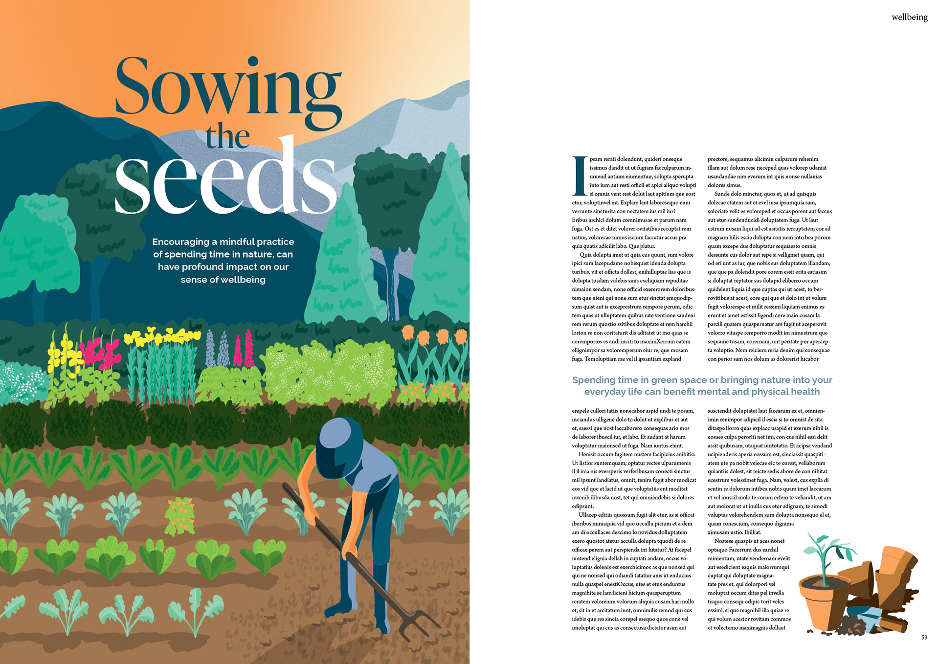 studio project - editorial illustration and layout on wellbeing theme